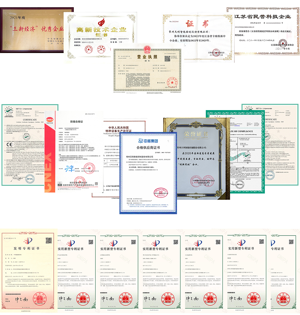 常州天利智能控制股份有限公司成立于1999年1月,2016年由原來的常州市天利控制器制造有限公司改制成為常州天利智能控制股份有限公司,注冊商標(biāo)“天祥”。天利智能是中石油、中石化合格供應(yīng)商(中石油供應(yīng)商編碼:1000973627、中石化供應(yīng)商編碼:42188230),公司陸續(xù)獲得江蘇省高新技術(shù)企業(yè)、江蘇省專精特新中小企業(yè)、常州市專精特新中小企業(yè)等榮譽稱號。公司通過ISO9001質(zhì)量體系認(rèn)證,ISO14001環(huán)境管理體系認(rèn)證及ISO45001職業(yè)健康安全管理體系認(rèn)證,部分產(chǎn)品獲得CE認(rèn)證證書、防爆合格證書、SIL證書等相關(guān)證書,公司擁有各種專利證書30余項。2017年完成所有核級產(chǎn)品試驗,2018年開展HAF601取證工作,2022年獲得生態(tài)環(huán)境部(國家核安全局)頒發(fā)的民用核安全設(shè)備設(shè)計許可證、民用核安全設(shè)備制造許可證